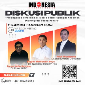Indonesia Research Center menggelar webinar diskusi publik dengan tema “proganda terorisme dimedia sosial sebagai ancaman disintegrasi pasca pemilu” pada hari senin, 11 …
